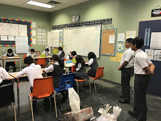Inquiry into Math: Today we learned about figures that have the same areas but different perimeters. To solve this questions it's important to think: What multiplied by what will give me the area desired? We practiced together and then they worked on a worksheet.